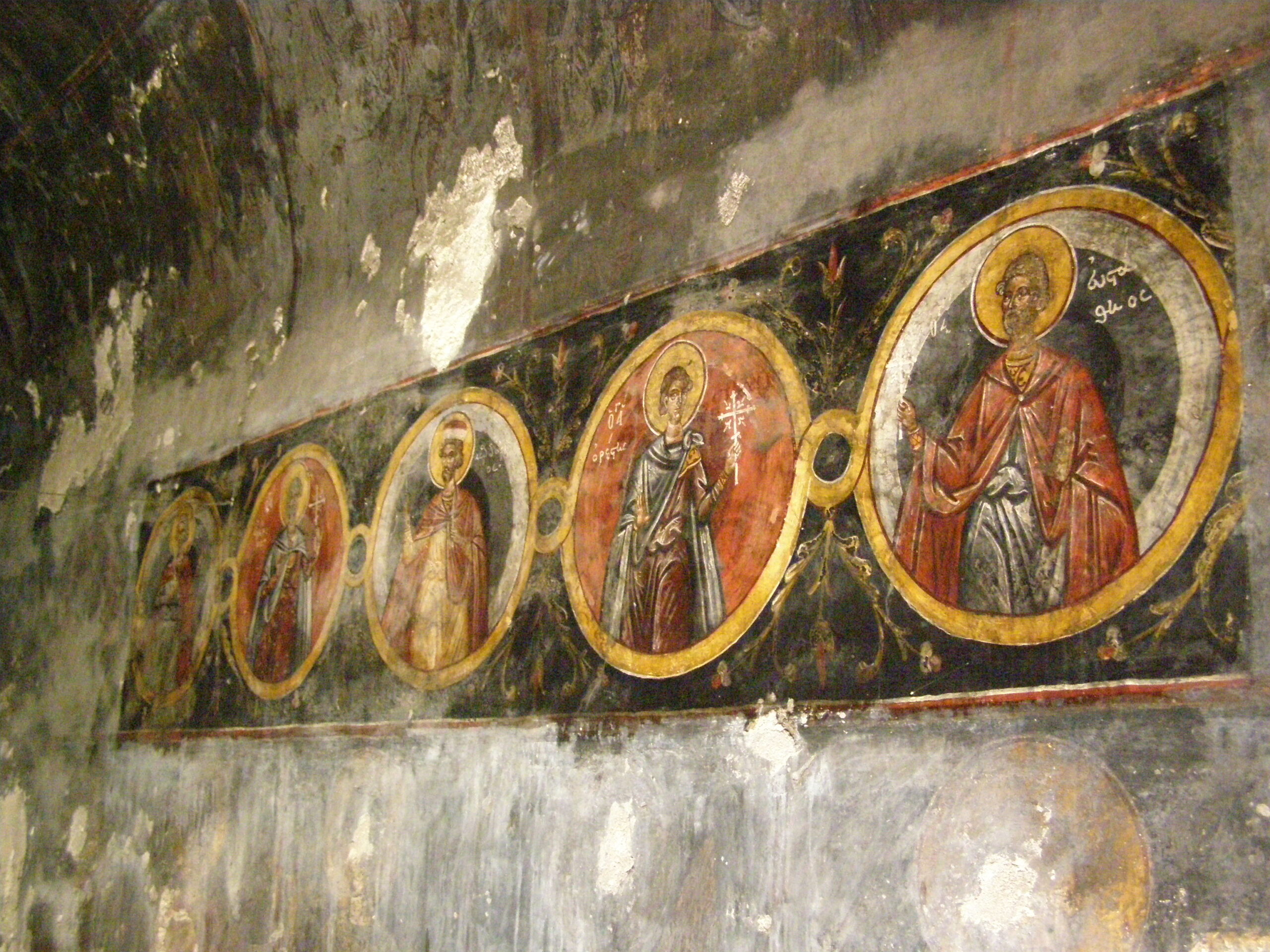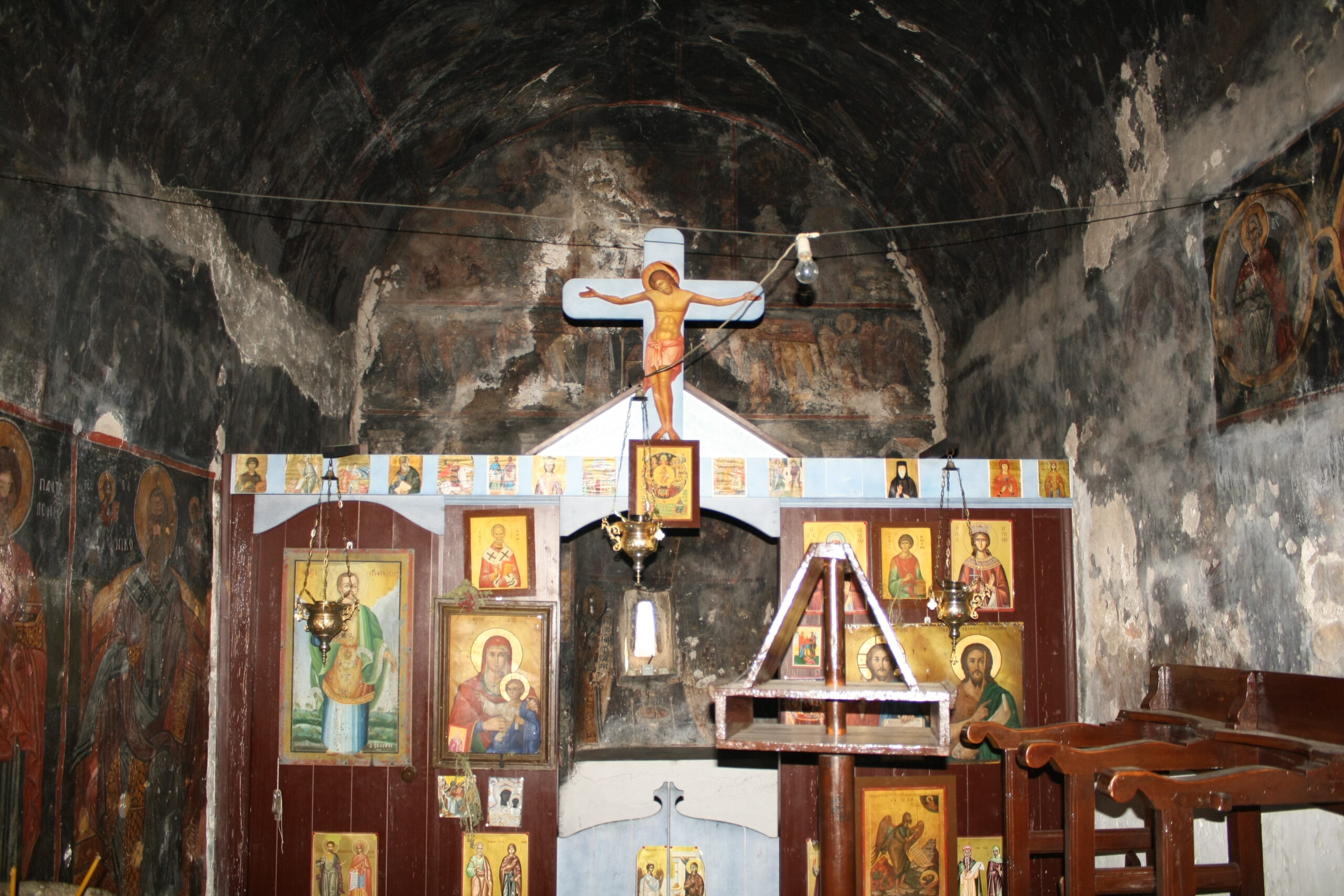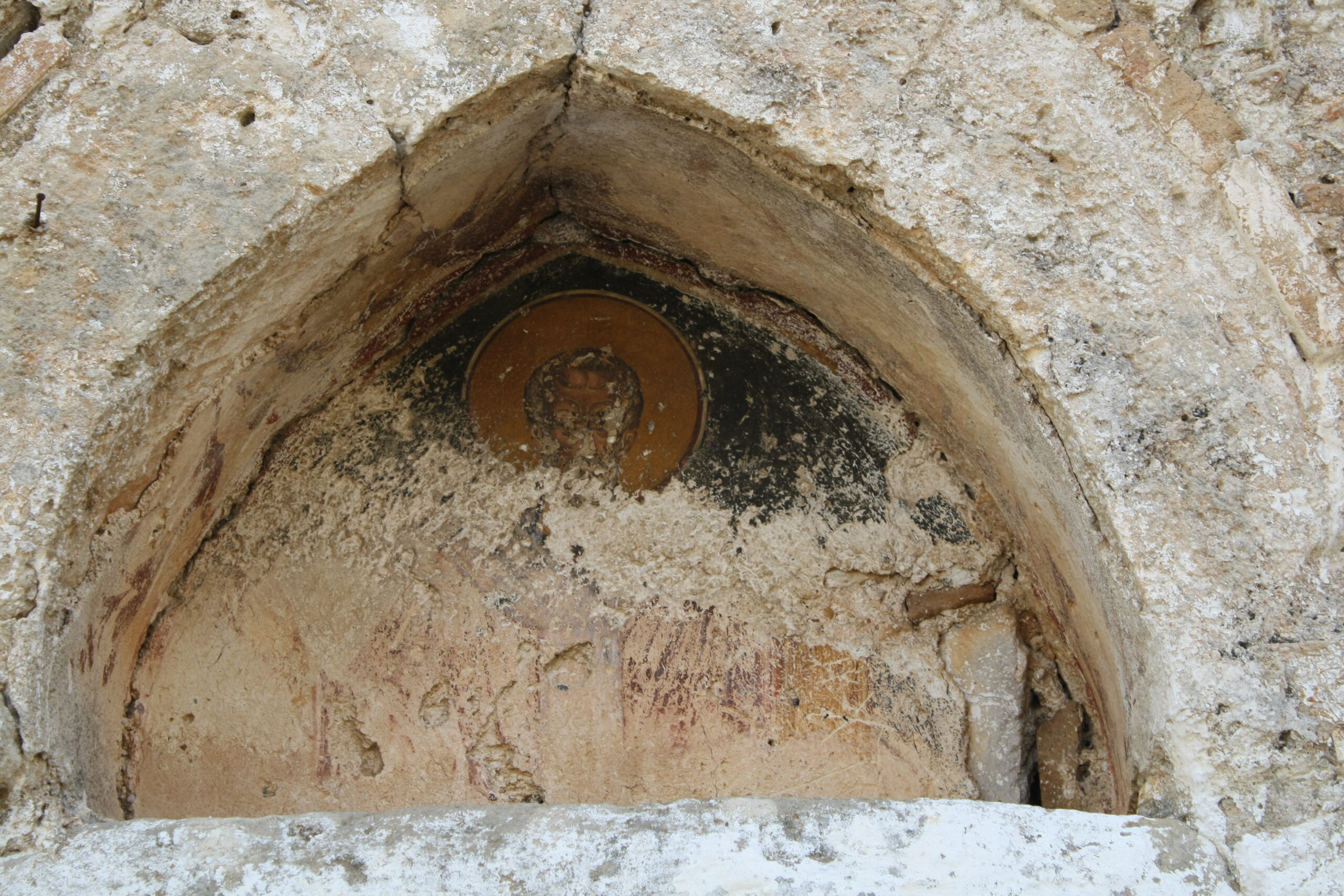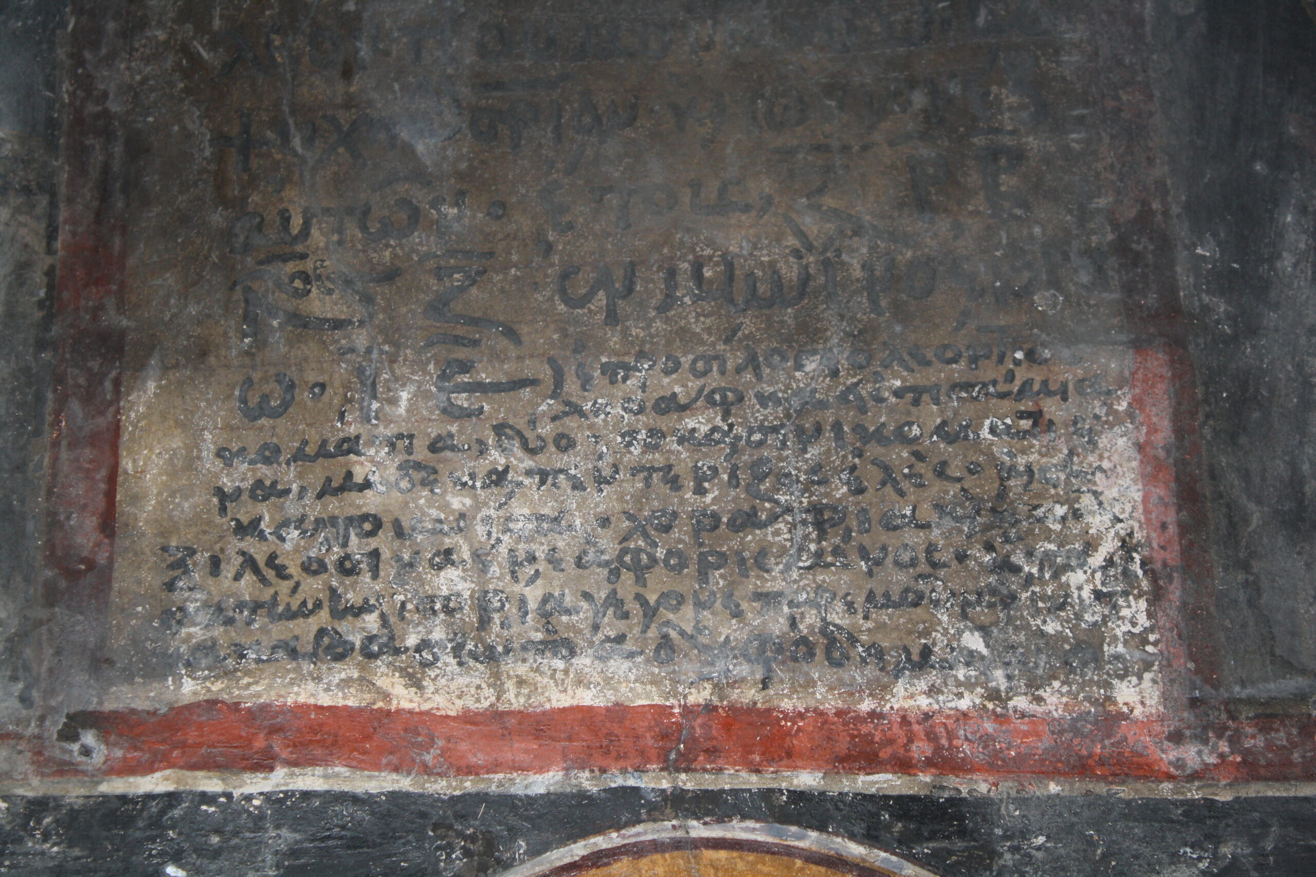 Όπως μνημονεύονται στην κτητορική επιγραφή που σώζεται ακέραιη στο βόρειο τοίχο, ο ναός το 1593 ανακαινίσθηκε, και τοιχογραφήθηκε από των Μαρίνο Κακαβά, με βοηθό του το νεότερο αδερφό του των Δημήτριο. Ο καλλιτέχνης ακολουθεί την Κρητική σχολή και είναι επηρεασμένος από την τεχνική των φορητών εικόνων, οι Κακαβάδες έχουν αγιογράφησι και άλλους ναούς στην περιοχή (Ταξιαρχών Στεφανίου, Αγ. Μαρίνας Φανερωμένης, Αγ. Δημήτριου Ρειτού-Αθικίων). Σύμφωνα με την επιγραφή ήταν μοναστήρι, με τουλάχιστον τέσσερις καλόγερους τους ιερομονάχους Μακάριο και Μητροφάνη και τους μοναχούς Γερμανό και Λεόντιο. Στην επιγραφή αναφέρεται ότι και η τέσσερις βοήθησαν στην ανακαίνιση και αγιογράφηση της εκκλησίας, αλλά φαίνεται ότι προσφορά χρημάτων έγινε από τον Λεόντιο, ο οποίος πούλησε χωράφια και ελιές σε άγνωστες μνημονευόμενες τοποθεσίες. Το όνομα ενός ακόμη ιερομονάχου Ιωασάφ έχει γραφεί στο ιερό, πάνω από την πρόθεση: Ιωασάφ Ιερομονάχου δώρων (;) που προφανώς συνέβαλε στην εικονογράφηση τμήματος του ιερού, στο σημείο αυτό.