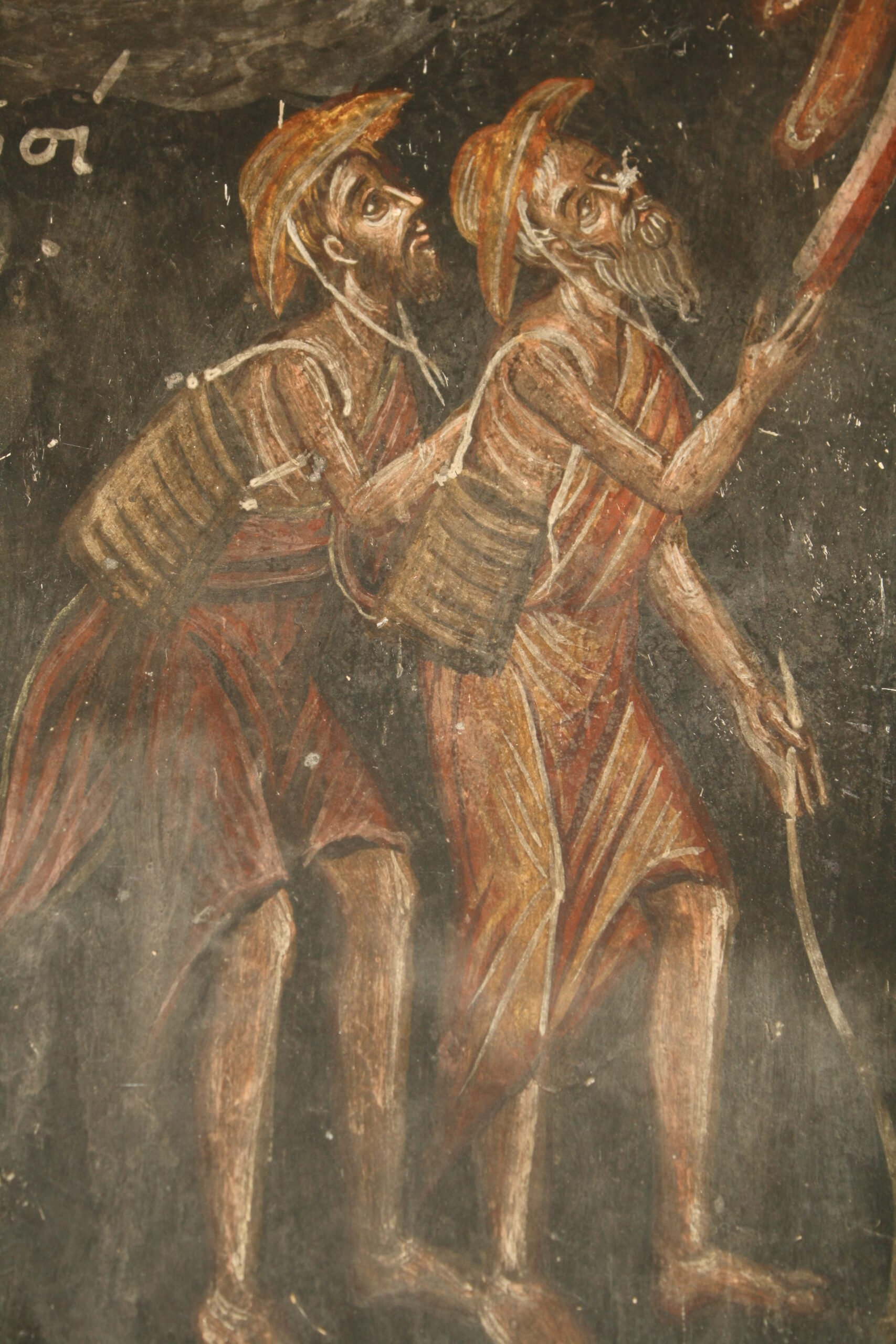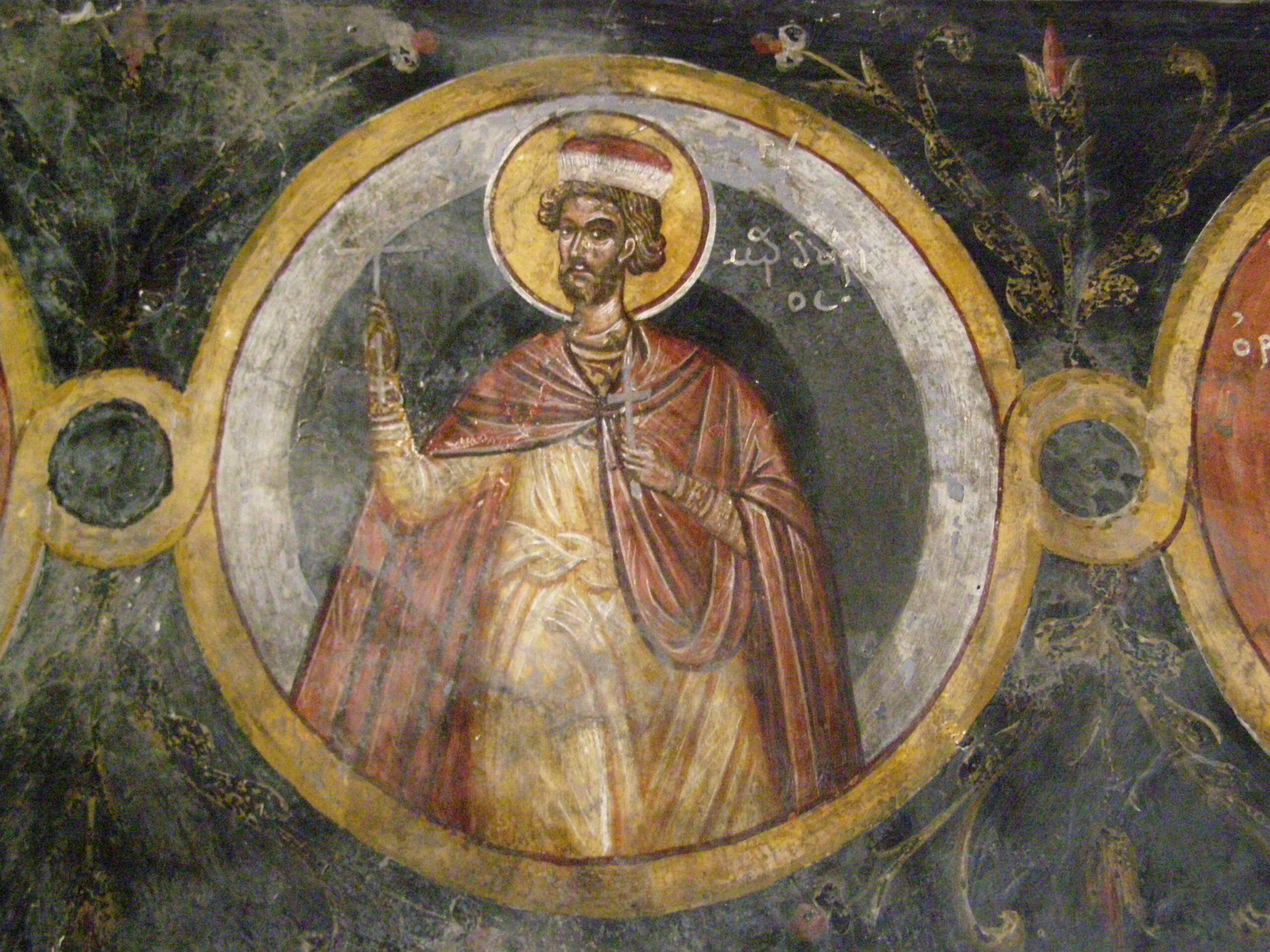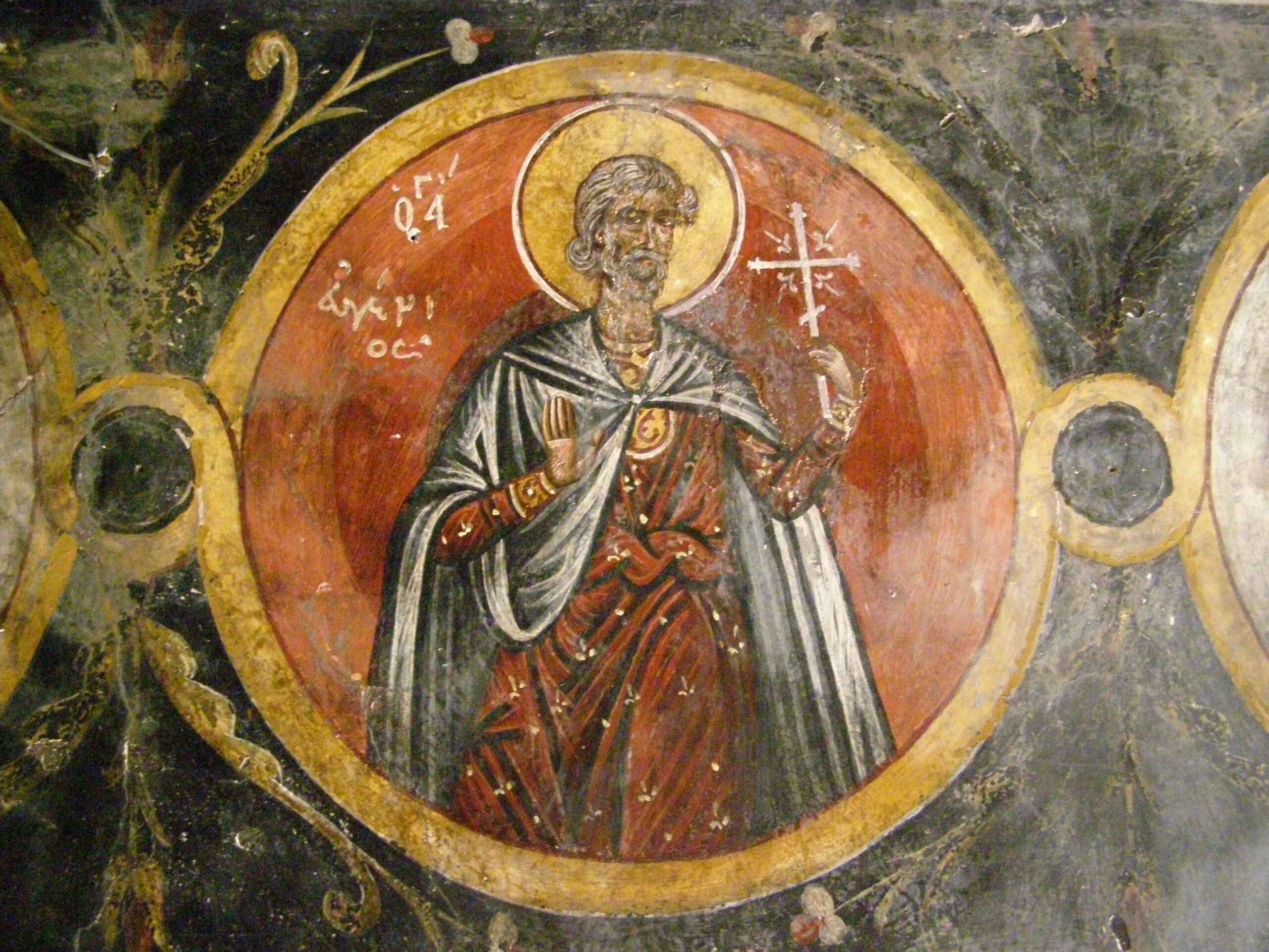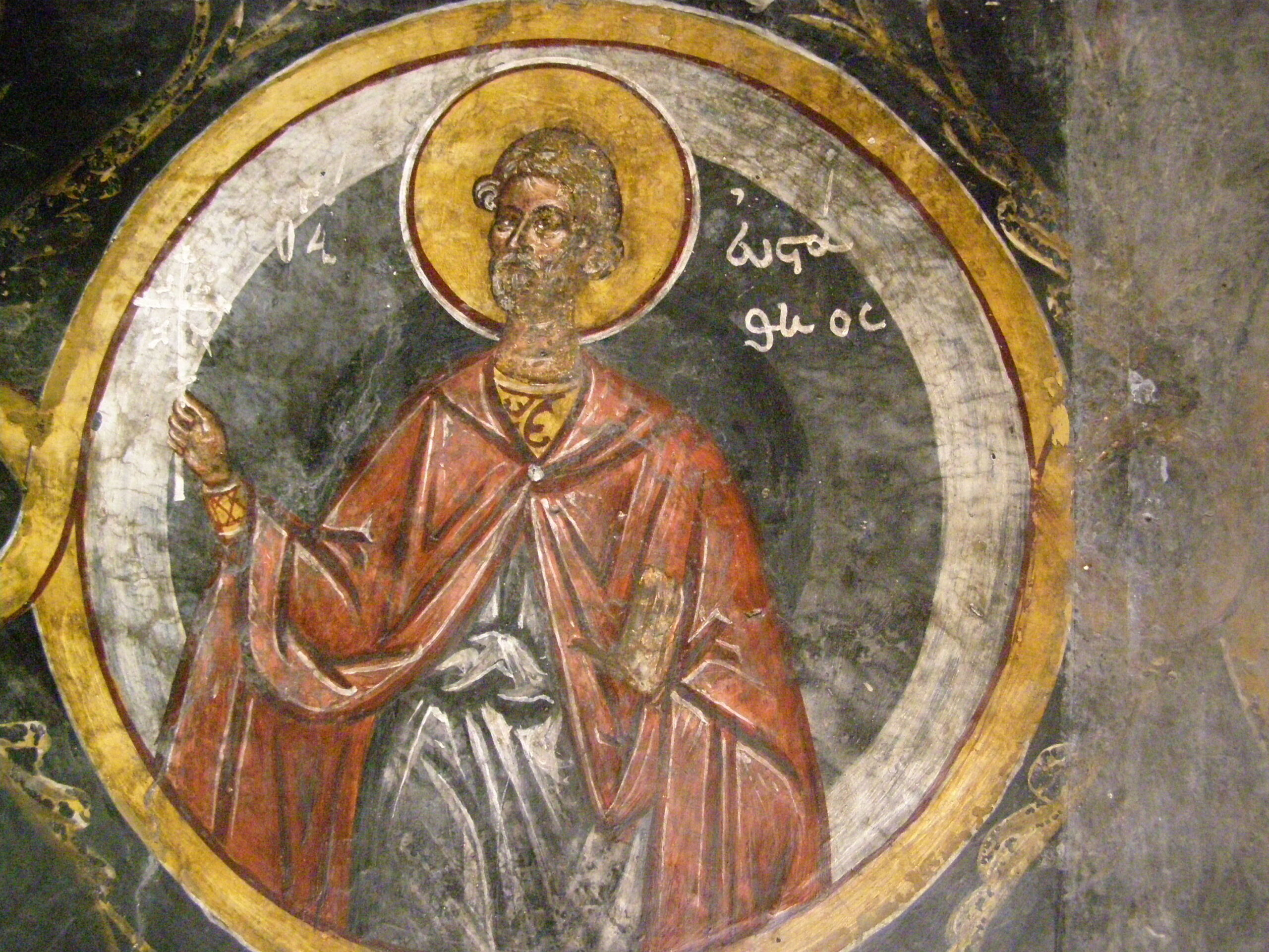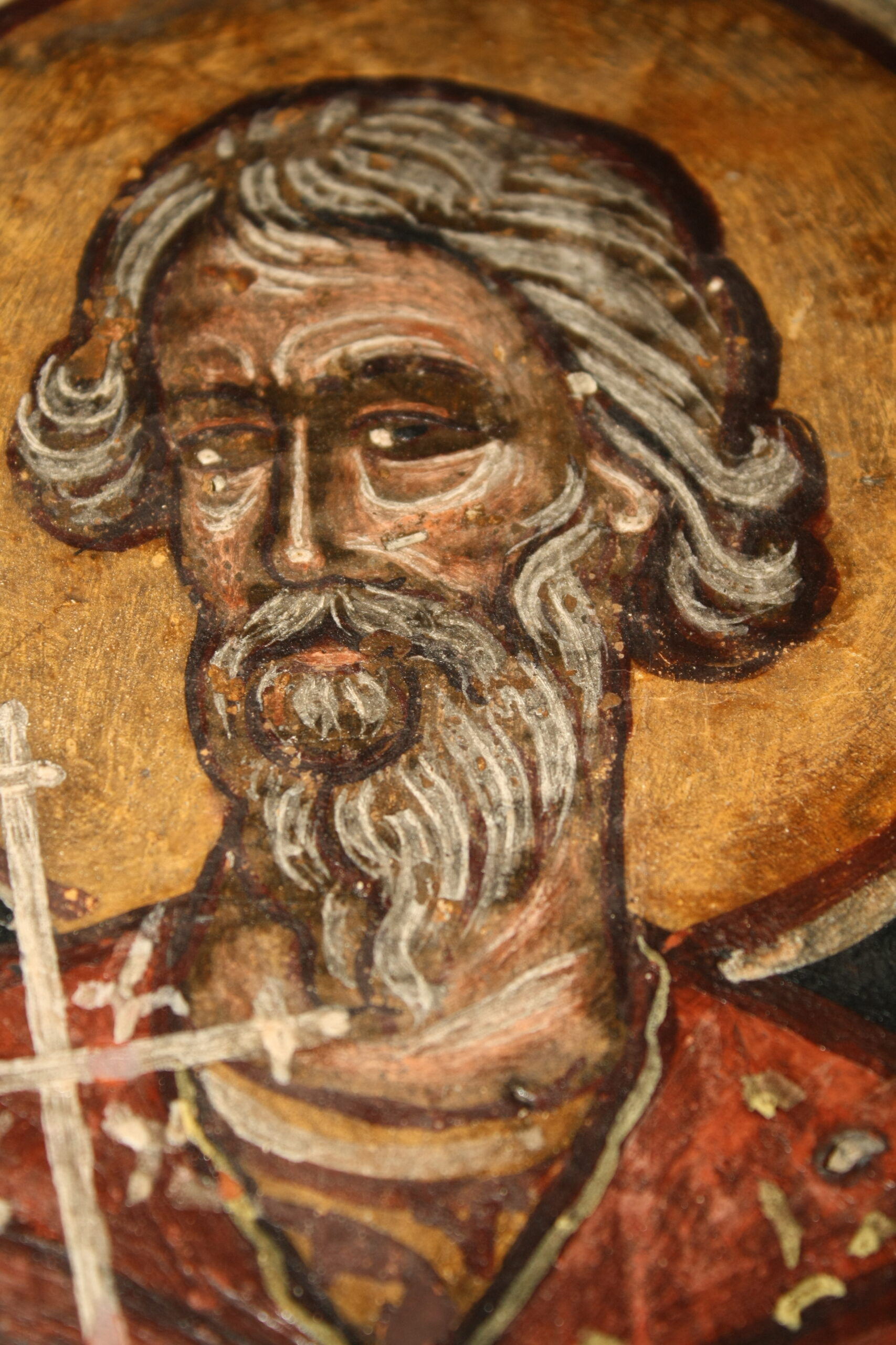 Όπως μνημονεύονται στην κτητορική επιγραφή που σώζεται ακέραιη στο βόρειο τοίχο, ο ναός το 1593 ανακαινίσθηκε, και τοιχογραφήθηκε από των Μαρίνο Κακαβά, με βοηθό του το νεότερο αδερφό του των Δημήτριο. Ο καλλιτέχνης ακολουθεί την Κρητική σχολή και είναι επηρεασμένος από την τεχνική των φορητών εικόνων, οι Κακαβάδες έχουν αγιογράφησι και άλλους ναούς στην περιοχή (Ταξιαρχών Στεφανίου, Αγ. Μαρίνας Φανερωμένης, Αγ. Δημήτριου Ρειτού-Αθικίων). Σύμφωνα με την επιγραφή ήταν μοναστήρι, με τουλάχιστον τέσσερις καλόγερους τους ιερομονάχους Μακάριο και Μητροφάνη και τους μοναχούς Γερμανό και Λεόντιο. Στην επιγραφή αναφέρεται ότι και η τέσσερις βοήθησαν στην ανακαίνιση και αγιογράφηση της εκκλησίας, αλλά φαίνεται ότι προσφορά χρημάτων έγινε από τον Λεόντιο, ο οποίος πούλησε χωράφια και ελιές σε άγνωστες μνημονευόμενες τοποθεσίες. Το όνομα ενός ακόμη ιερομονάχου Ιωασάφ έχει γραφεί στο ιερό, πάνω από την πρόθεση: Ιωασάφ Ιερομονάχου δώρων (;) που προφανώς συνέβαλε στην εικονογράφηση τμήματος του ιερού, στο σημείο αυτό.