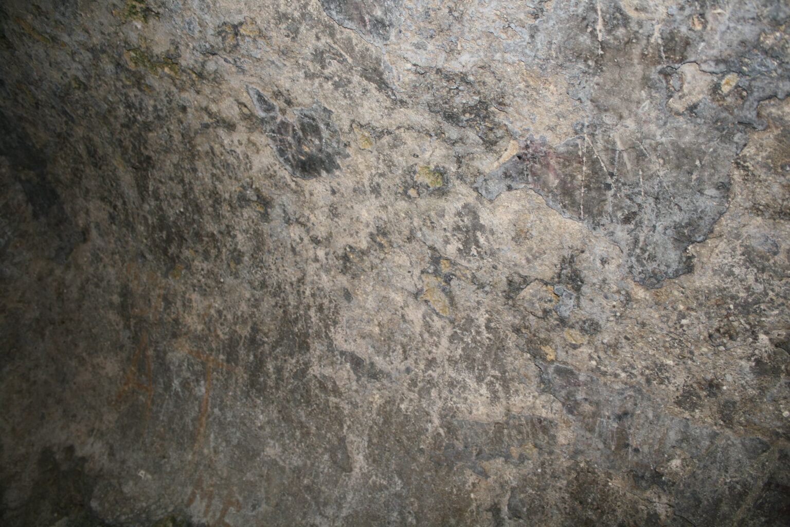 Τριάντα περίπου µ. βορειότερα από την πρώτη απότοµη κάθοδο του εδάφους, συναντάµε όπως είπαµε, δεύτερη κάθετη εδαφική κάθοδο του ίδιου περίπου ύψους. Ανάµεσά τους σχηµατίζεται η τρίτη εδαφική βαθµίδα στην επιφάνεια της οποίας βρίσκει κανείς επίσης πολλά σκορπισµένα κεραµίδια. Η εδαφική αυτή βαθµίδα συνεχίζεται και ανατολικότερα του δρόµου, δεδοµένου ότι το δεύτερο πέτρινο τείχος συνεχίζεται και προς αυτή την πλευρά, σε ελαφρώς µικρότερο ύψος. Στο ανατολικότερο περίπου άκρο αυτής της προέκτασης, έχει λαξευθεί ο εντυπωσιακότερος τάφος της περιοχής Πρόκειται προφανώς για τον θαλαµοειδή τάφο που αναφέραµε παραπάνω. Στον βράχο που αποτελείται από αµυγδαλίτη λίθο έχει σκαλιστεί ανοιχτός διάδροµος, µήκους 2 περ. µ. που οδηγεί σ’ ένα είδος άσκεπου, σχεδόν τετράγωνου προθαλάµου και στη συνέχεια στην πύλη του θαλάµου. Ο θάλαµος, διαστάσεων λίγο παραπάνω από 2 µ. x 1,5 µ., ύψους περ. 1,80 στο κέντρο της καµαρωτής στέγης, περιέχει τρεις τάφους, επανειληµµένα συλληµένους, σε σχήµα Π (από τις τρεις πλευρές, εκτός εκείνης της εισόδου) σκαλισµένους στη βάση του.